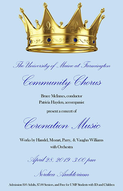 This year’s spring concert, under the direction of Bruce McInnes, with Patricia Hayden, accompanist, will be held April 28 in Nordica Auditorium.