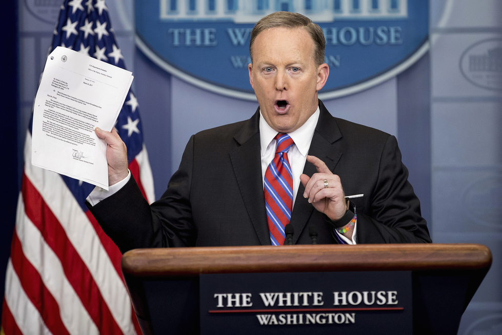 White House press secretary Sean Spicer holds up a document concerning a Washington Post story on Sally Yates as he talks to the media during the daily press briefing at the White House in Washington Tuesday, March 28, 2017. Spicer discussed the Supreme Court nominee Justice Neil Gorsuch, jobs, healthcare, and other topics. WASHINGTON — […]