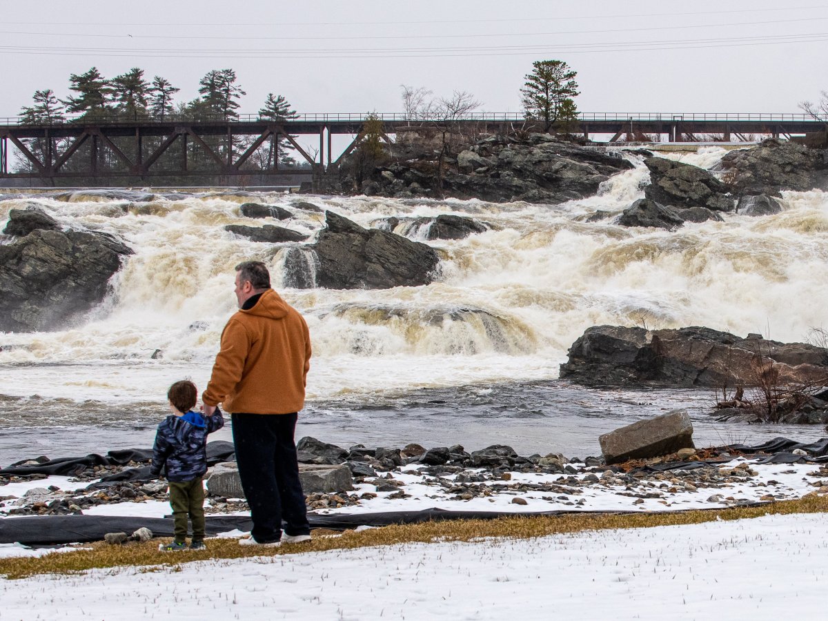 A view of Great Falls from Veterans Memorial Park in Lewiston shows the power of the mighty Androscoggin River.