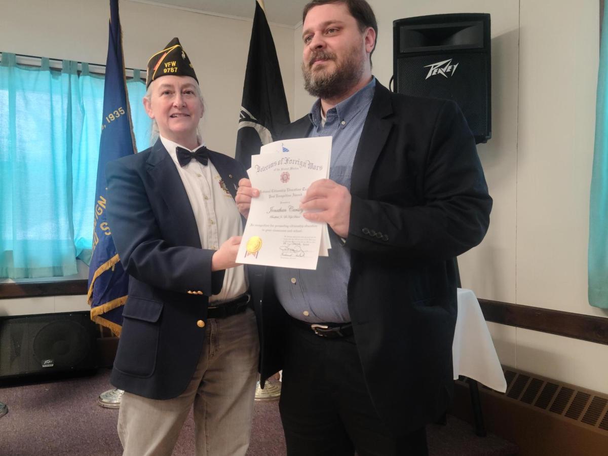 Jonathan Carsley, a teacher from Buckfield Jr/Sr HIgh School was named the post’s teacher of the year while Rhyann Holden, who is homeschooled was the winner of the Voice of Democracy contest.