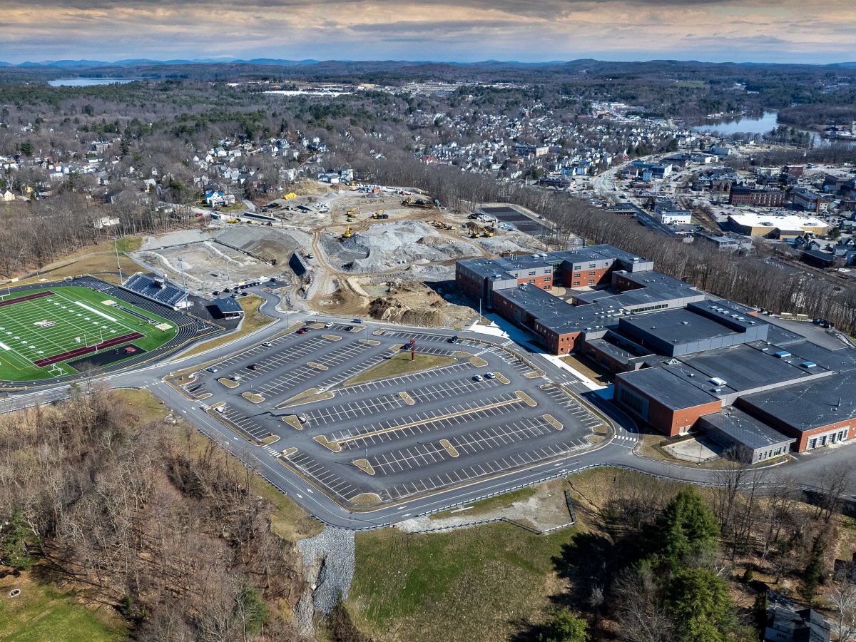 Athletes practice Monday morning while construction continues on the playing fields at Edward Little High School in Auburn.
