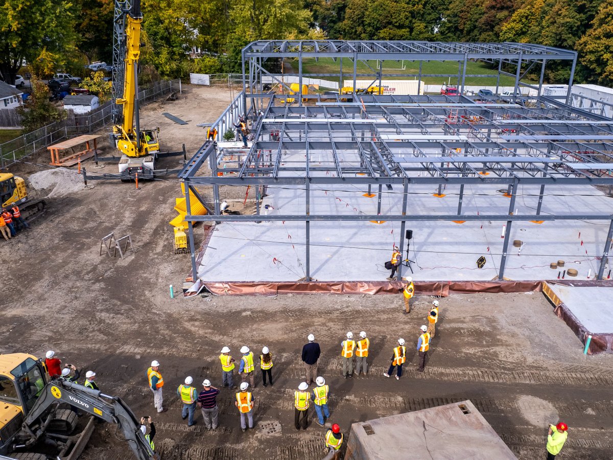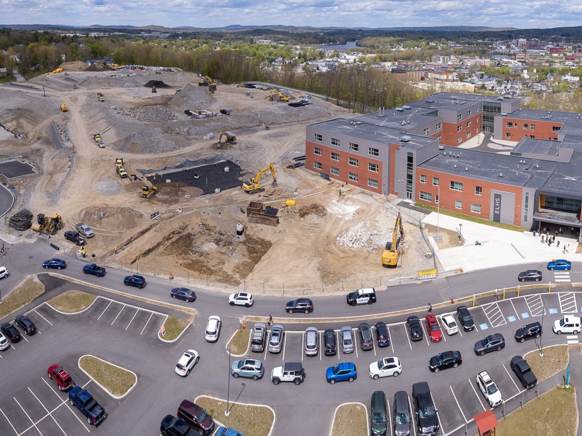Aerial flyovers of the cleanup at the Mount Auburn Apartments and construction at the PAL Center in Auburn.