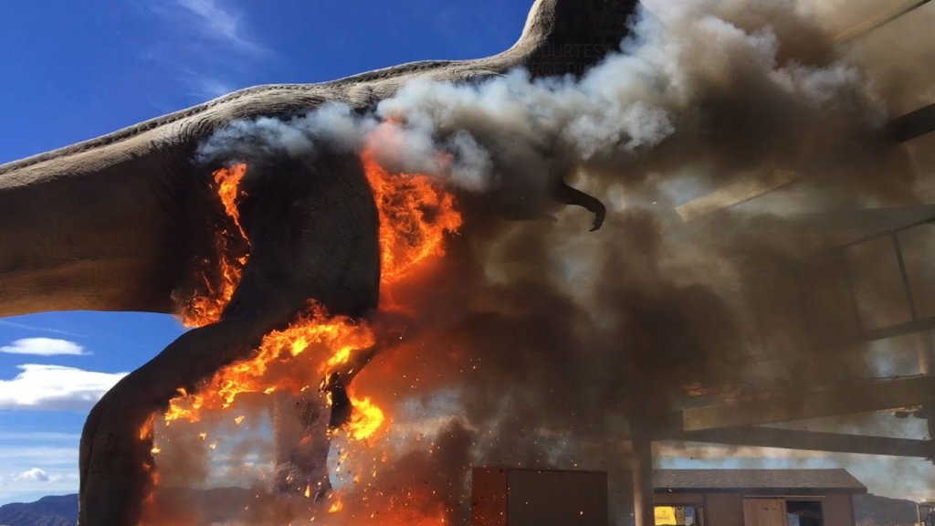 CANON CITY, Colo. (AP) — The co-owner of a dinosaur-themed park in southern Colorado thinks an electrical malfunction caused a life-size animatronic Tyrannosaurus Rex to burst into flames. Zach Reynolds says the T-Rex at the Royal Gorge Dinosaur Experience smoldered for about 10 minutes before it caught fire Thursday morning. Visitors watched as the inferno […]