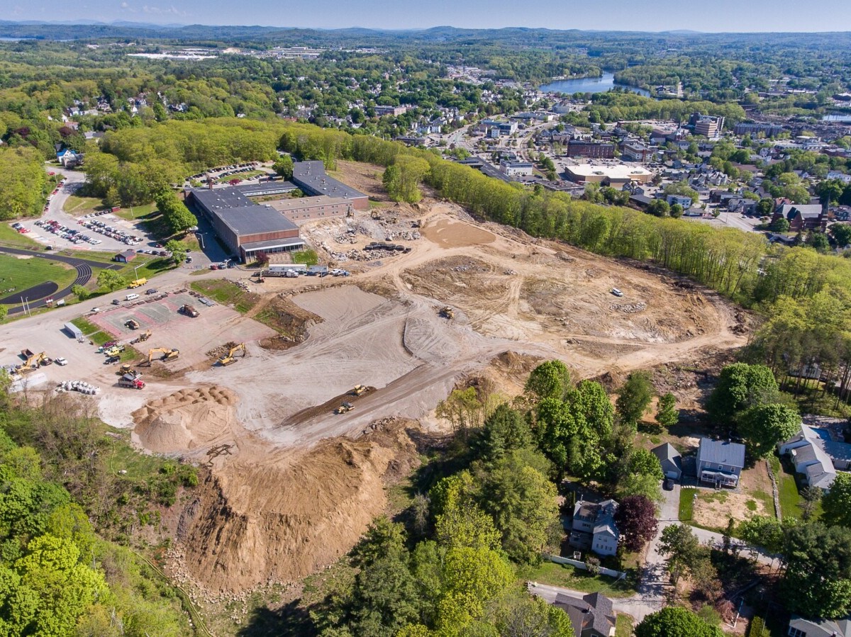 The Sun Journal captured an aerial view of the expansion at Lewiston High School and groundwork for the new Edward Little High School.