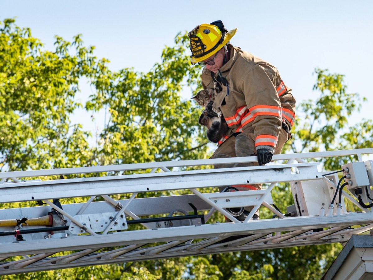 It was purr-fect timing when firefighters training downtown rescued a feline stuck on a roof for nearly a week.