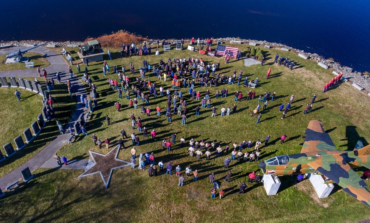 An aerial view of the Veterans Day ceremony in Lewiston.