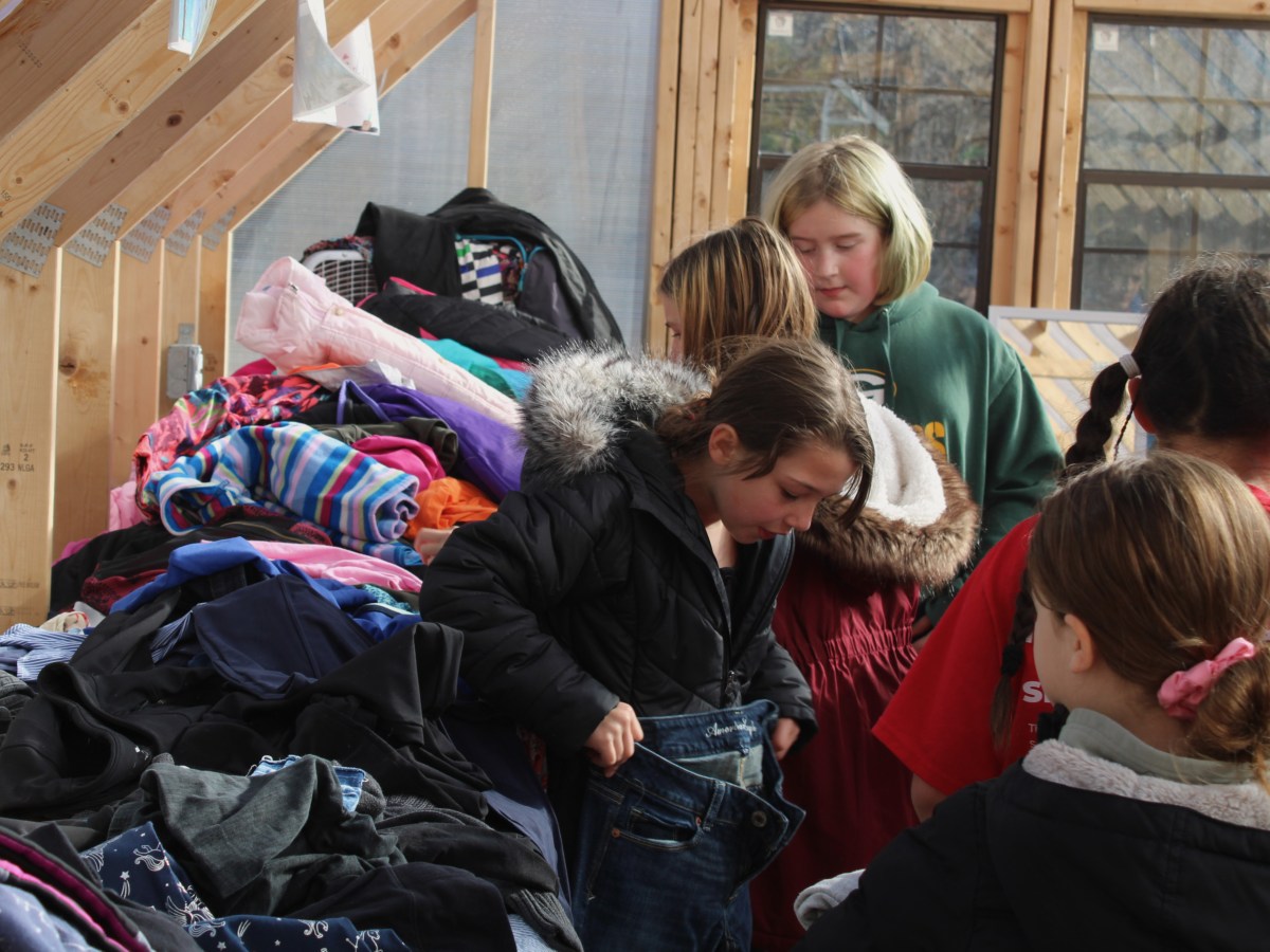 Two volunteers keep students warm at Spruce Mountain Elementary School