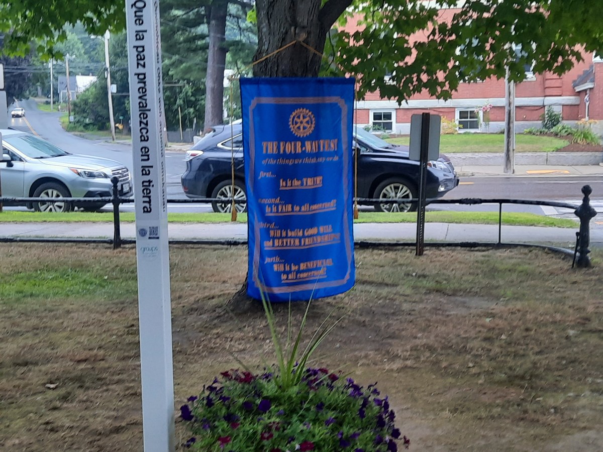 Rotary Club members and local leaders gathered July 31 to dedicate a Peace Pole symbolizing community, service, and global peace.